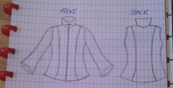 Er was mij een foto en een link naar een video gegeven, waar ik een van deze jassen in actie kon zien en na een gesprek over de details kwam ik met dit ontwerp: