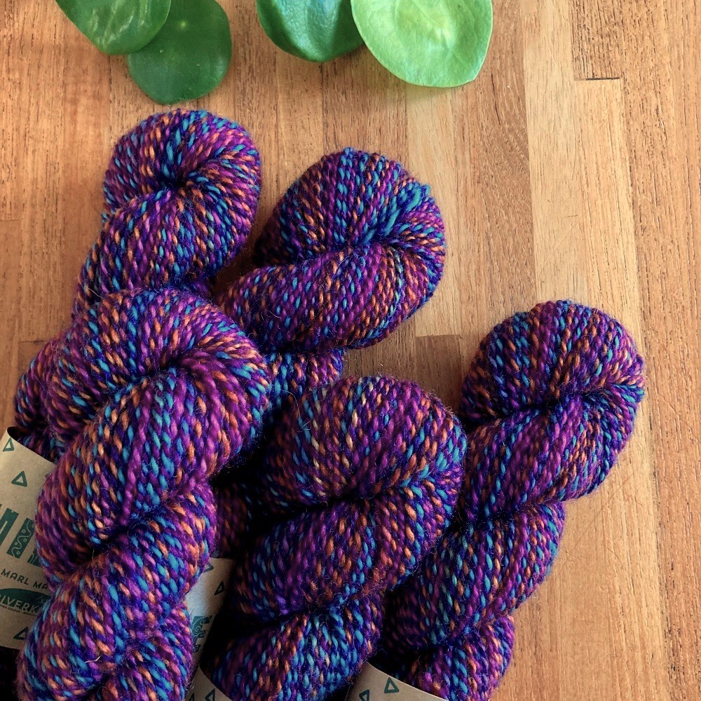 Chimera is a hand-dyed marl entirely unique to RiverKnits! It is a smooth, worsted-spun 2-fold yarn with a lot of lustre and amazing softness. The Bluefaced Leicester breed produces wool that is strong and next-to-skin soft, making it ideal for a wide range of projects. This yarn will work fantastically in statement shawls, hats, mittens, and jumpers.