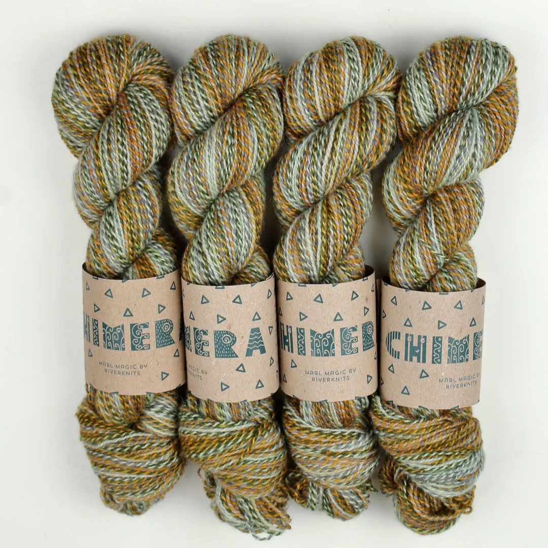 Chimera is a hand-dyed marl entirely unique to RiverKnits! It is a smooth, worsted-spun 2-fold yarn with a lot of lustre and amazing softness. The Bluefaced Leicester breed produces wool that is strong and next-to-skin soft, making it ideal for a wide range of projects. This yarn will work fantastically in statement shawls, hats, mittens, and jumpers.