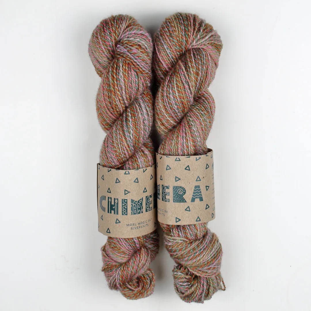 Chimera is a hand-dyed marl entirely unique to RiverKnits! It is a smooth, worsted-spun 2-fold yarn with a lot of lustre and amazing softness. The Bluefaced Leicester breed produces wool that is strong and next-to-skin soft, making it ideal for a wide range of projects. This yarn will work fantastically in statement shawls, hats, mittens, and jumpers.