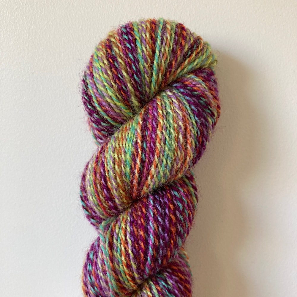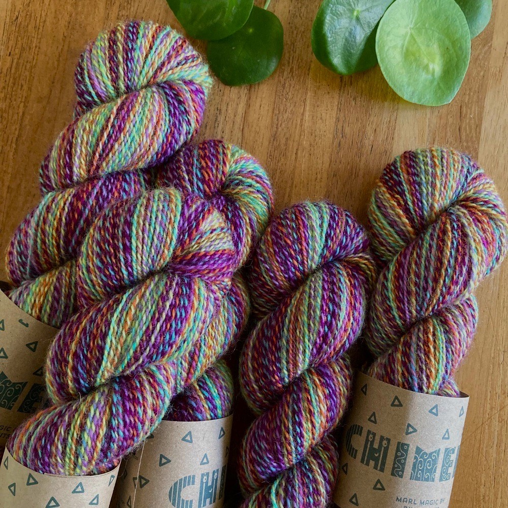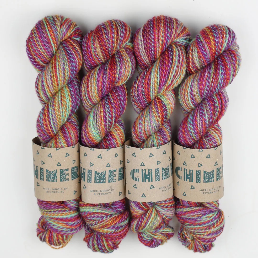 Chimera is a hand-dyed marl entirely unique to RiverKnits! It is a smooth, worsted-spun 2-fold yarn with a lot of lustre and amazing softness. The Bluefaced Leicester breed produces wool that is strong and next-to-skin soft, making it ideal for a wide range of projects. This yarn will work fantastically in statement shawls, hats, mittens, and jumpers.