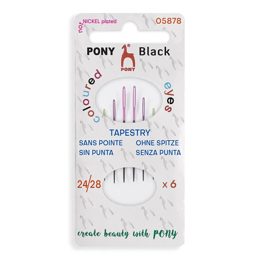 Een setje van 6 gekleurde aluminium wolnaalden Nr. 24-28